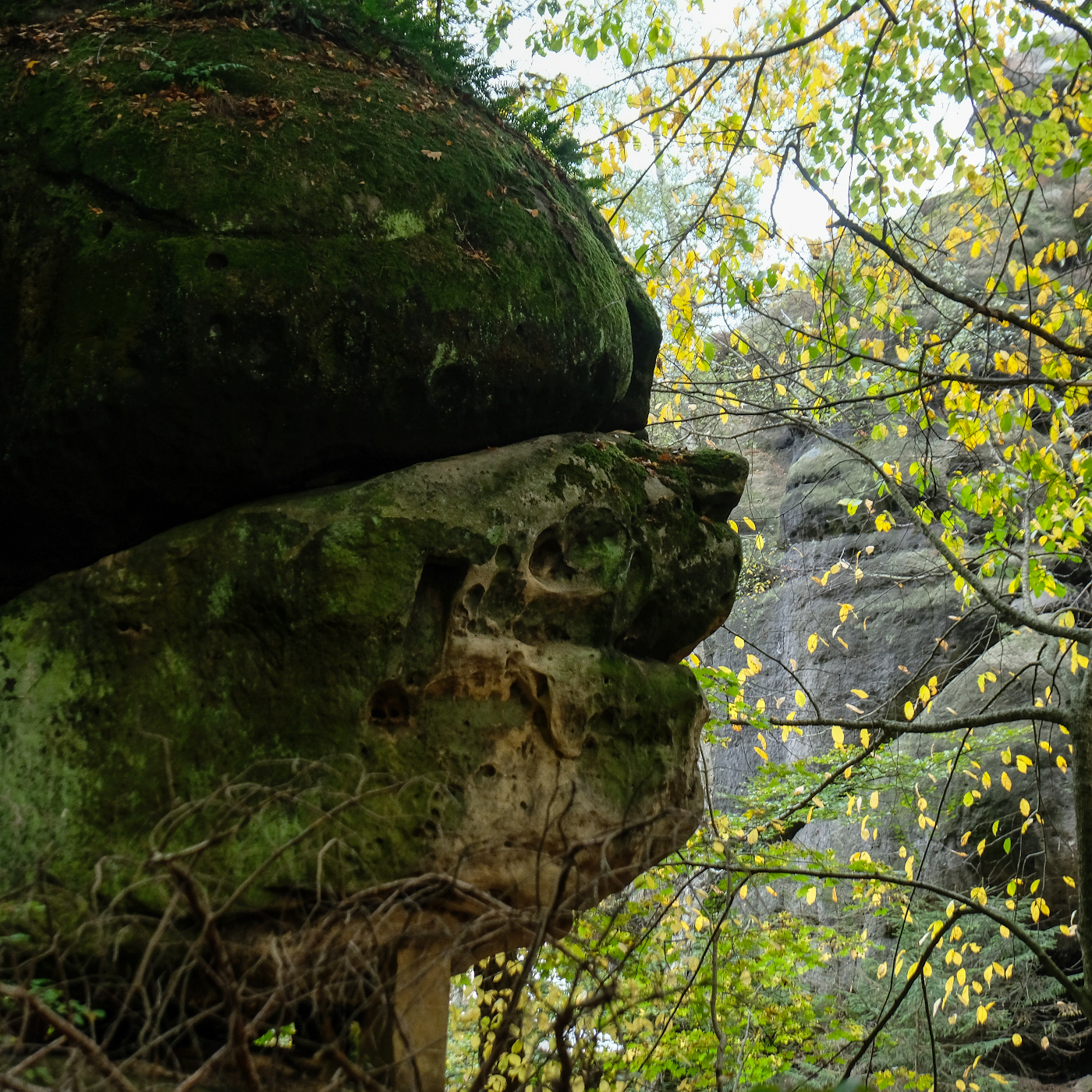 JAAA, Bibbern hat was mit einem mulmigen Gefühl zu tun. Deshalb heißt es ja so. Und JAAA, das geht im Wald ziemlich gut… Du musst Dir nur eintrichtern, dass Du im Wald nie alleine bist. Wirklich NIE! Da gibt´s immer irgendwas im Gebüsch, das Dich anguckt. Oder direkt hinter Dir. Und wenn Du zurückguckst, verwandelt es sich – wusch – in irgendwas Harmloses: in einen Ast oder so… Aber wehe, Du drehst so nem Ding den Rücken zu. Naaa? Fängste jetzt schon so´n kleines bisschen mit Bibbern an…? Fein! Dann können wir ja los in die Sächsische Schweiz. Das wird mega! Stell Dir vor: Geisterberge, die wie Schiffe über Nebelmeere schwimmen. Schluchten, wo es sogar tags zappenduster ist. Baumwesen mit grimmigen Augen und Gesichtern. Felsentrolle, Klufthexen, steinalte Mooskröten, Höhlenbennos, Winkelspinnen, Klammkrokodile, Opferkessel, Diebskeller… Ich sag ma´so: Die Sächsische Schweiz ist nix für Feiglinge! Nen besseren Ort zum Waldbibbern findest Du nirgendwo sonst.