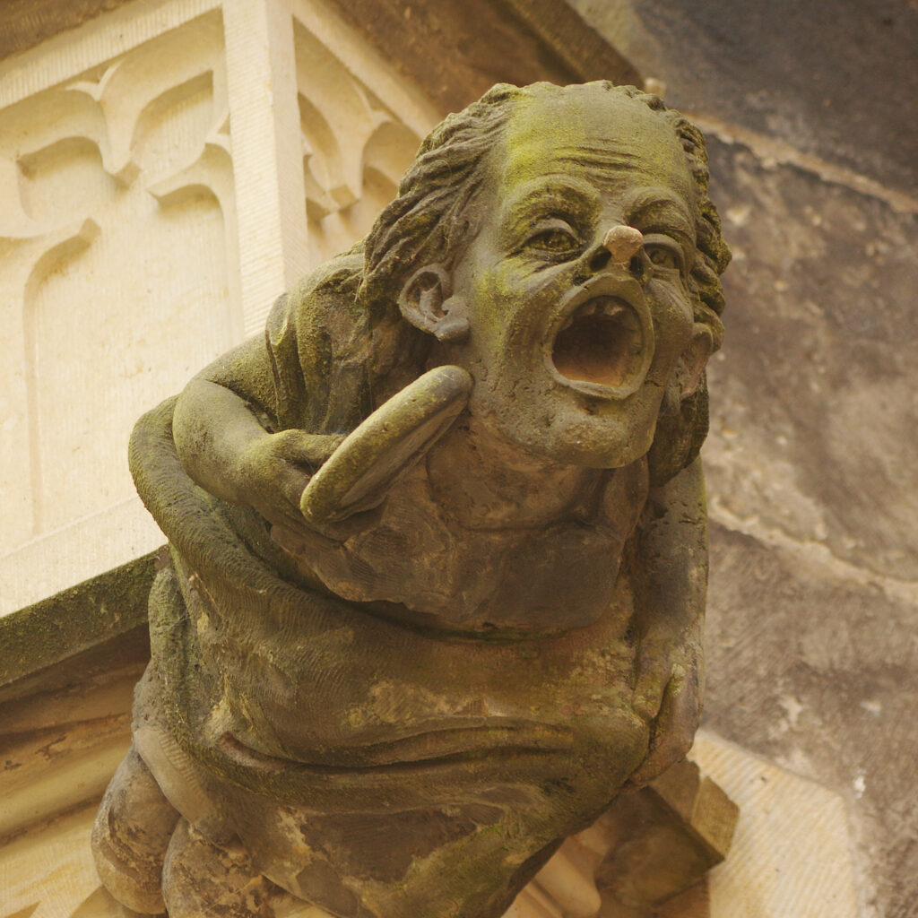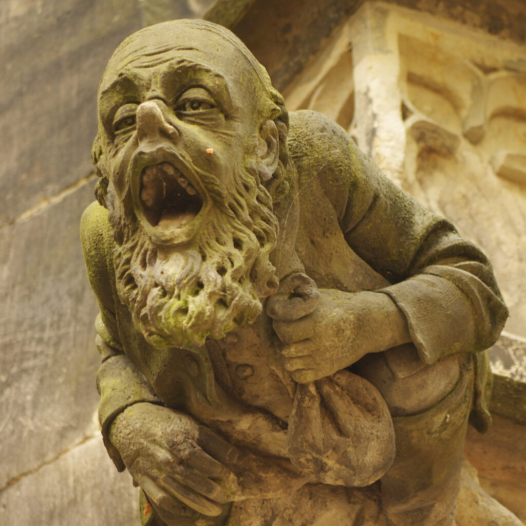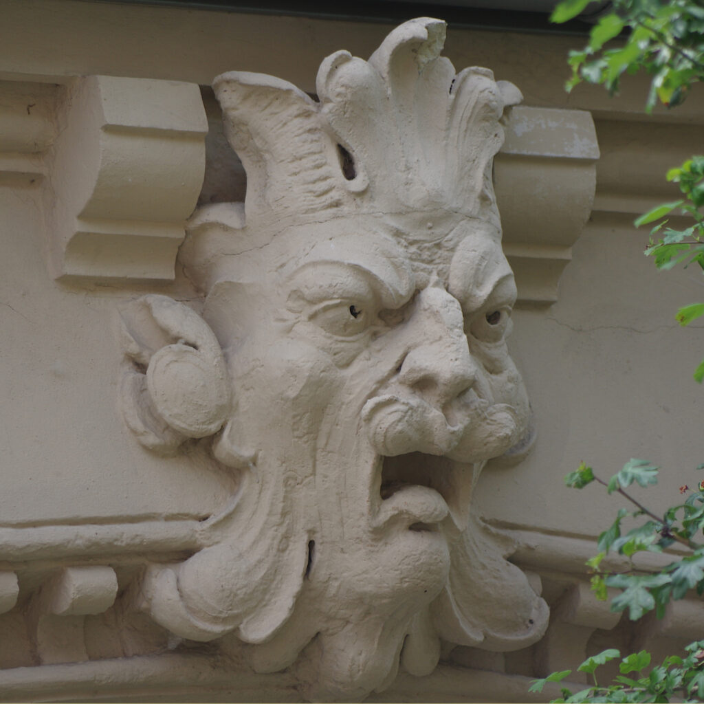 Ok, den Rest der Geschichte vom Teufelserker können Dir bestimmt auch unsere Stadtführer von der Touristinfo am Markt erzählen. Ich hab nämlich grad keine Zeit dafür… Mir ist aufgefallen, wie viele solcher Gesichter Pirna hat! Nicht bloß den Teufel, sondern echt ne krasse Menge! Über fast jedem Tor. An zig Fassaden, Brunnen und Erkern. Sogar auf den Dächern: Ungeheuer, Wüteriche und komische Zausel. Die meisten gucken ziemlich gefährlich!